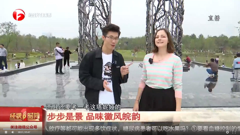 2023年12月15日,我校2022级电子信息专业俄罗斯籍国际学生VORONTSOVA TATIANA(中文名:塔妮娅)参与了安徽经济生活频道节目录制,“打卡”园博园,感受安徽地域文化特色。