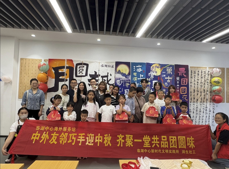 在社区党群服务中心多功能厅,与会的外国友人们共同观看了由政协委员、社区群众和留学生表演的情景演唱、器乐合奏+诗朗诵、黄梅戏选段、舞蹈等文艺节目,精彩纷呈的演出赢得了阵阵掌声。留学生们也积极参与其中,他们通过参加此次活动,不仅加深了对中秋文化的理解,也感受到了家一般的温暖。
