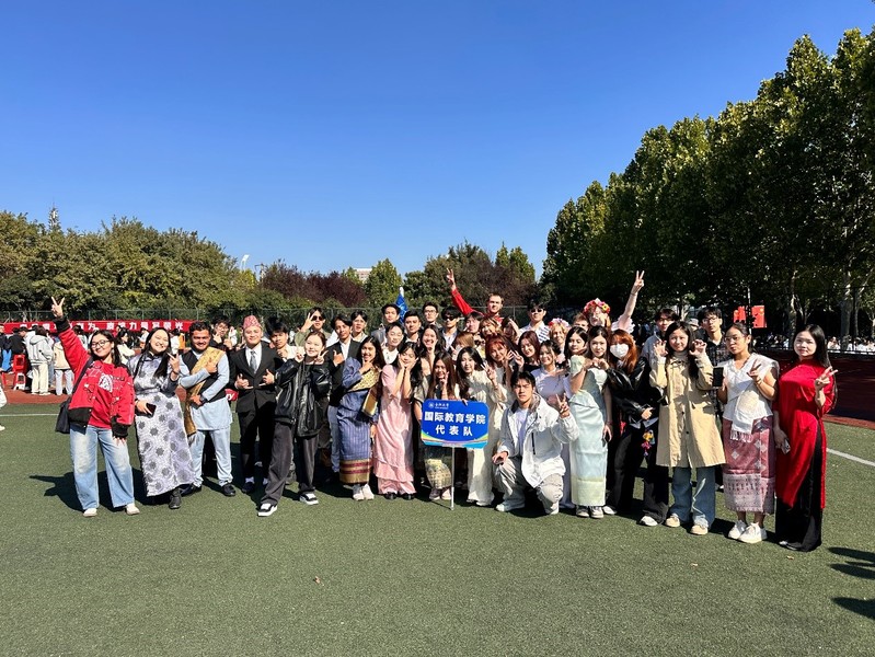 随着方阵有序退场,留学生们的入场任务圆满完成。从前期排练时的反复磨合,到现场分毫不差的整齐步伐,每一步都凝聚着团队的用心与汗水。这份跨越语言障碍的高效协作,为本次运动会注入了独特的国际活力,也让国际学子的青春风采在运动场上绚丽绽放。