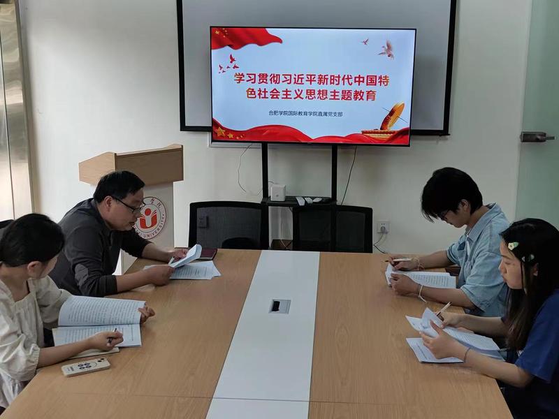 国际教育学院直属党支部后续将根据《中共合肥学院委员会关于印发<合肥学院开展学习贯彻习近平新时代中国特色社会主义思想主题教育理论学习工作安排>的通知》文件提出的具体内容,开展多种形式的理论学习,切实把学习成果不断转化为解决实际问题、推动实际工作的过硬本领和能力。