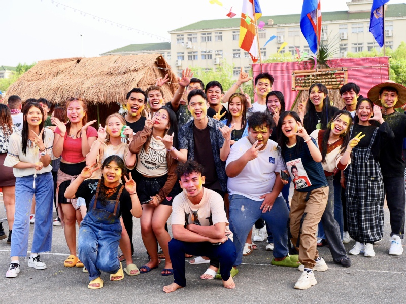 下午的文艺汇演首先是歌舞节目,各国同学载歌载舞,在富有民族特色的歌舞节目中,展现了多元文化和各国文明交流互鉴、共同融合发展的和谐面貌。随后活动进入互动环节,柬埔寨传统游戏“抢树枝”、“面粉挑糖果”,各国同学积极参与,共享欢乐时光。最后,迎来了新年庆祝活动的高潮——泼水环节。泼水既表达对彼此的美好期望,也寄托着对来年的祝福。活动中的一声声“新年快乐”在此刻显得格外真挚。熬过寒冬,我们盛情拥抱生机盎然的新春。疫情期间,大家一起共克时艰,才迎来今天的团聚时刻。