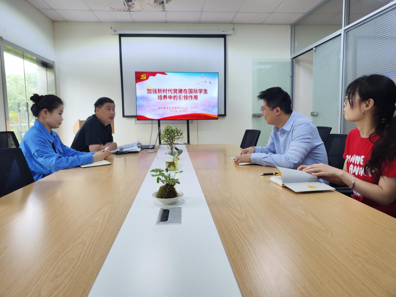 为持续深入推进学习贯彻习近平新时代中国特色社会主义思想主题教育,5月18日下午,国际教育学院直属党支部书记方宗保以“加强新时代党建在国际学生培养中的引领作用”为主题,给支部党员讲授专题党课。