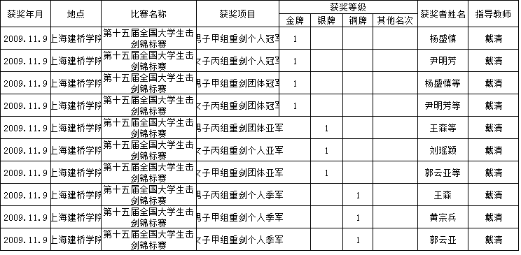 2009年合肥学院体育俱乐部改革指导学生获奖一览表