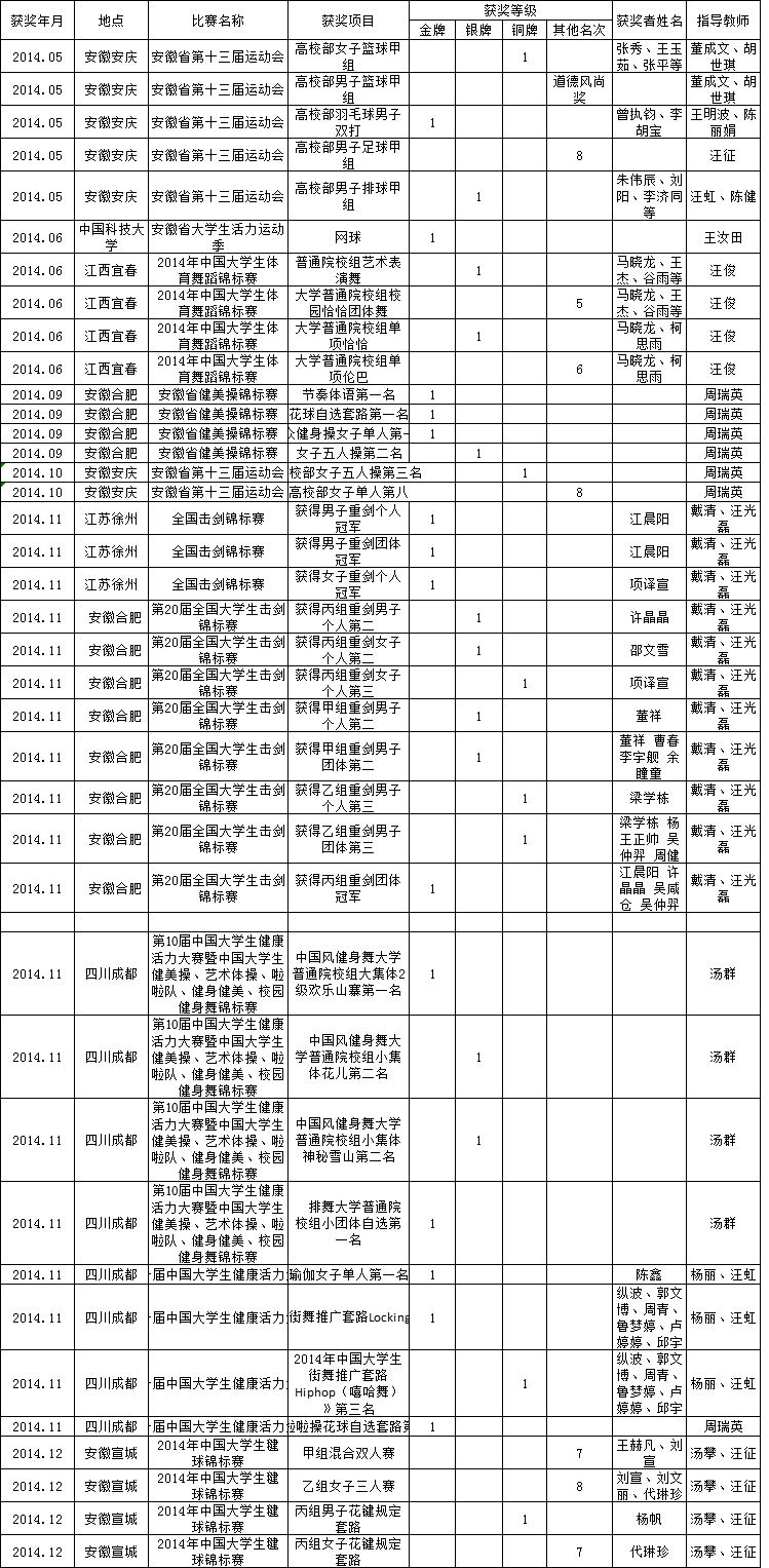2014年合肥学院体育俱乐部改革指导学生获奖一览表
