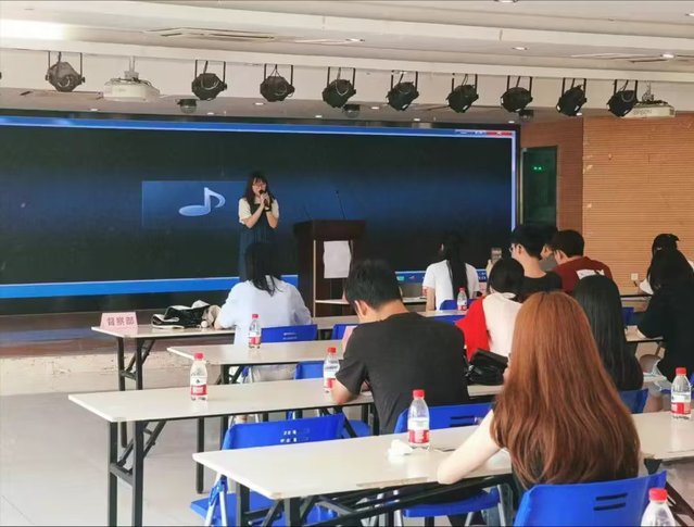 本次换届大会的参会人员有艺联指导老师 、艺联新老主席团、艺联新老四部门、新老俱乐部主任和老助教,由汪俊老师上台致辞,宣布大会正式开始。会议内容主要包括老管理层对过去一年的工作进行汇报与总结、各新管理层进行简短的发言,欣赏朗读者俱乐部带来的朗诵《青春中国》和声乐俱乐部带来的歌曲《落空》,大会最后一项,由各位领导为新干部颁发聘书并合影留念,由汪老师和主席团及其四部门为评优干事颁发奖状。
