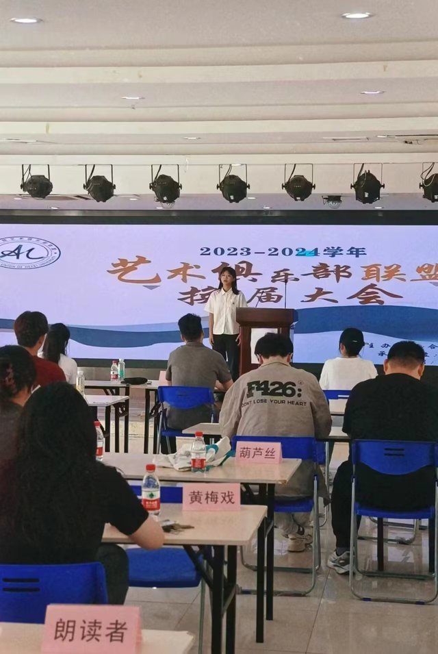 由公共体育与艺术教学部主办、艺术俱乐部联盟承办的2023-2024学年艺术俱乐部联盟换届大会于6月10日上午10:00在三期大学生活动中心一顺利举行。