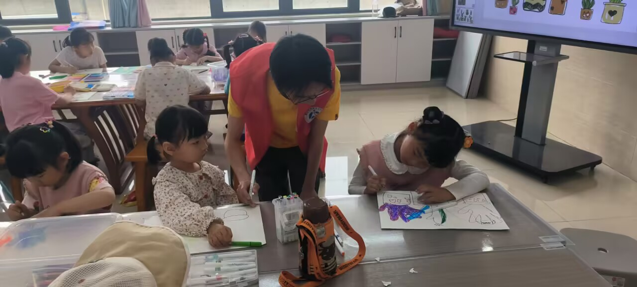 时间在悄然无声中悄然流逝,转瞬间,下课铃声响起。小朋友们却依旧沉醉在创作的欢乐海洋里,他们的作品渐渐展现出独一无二的个性与魅力。志愿者们目睹这一幅幅温馨而又充满奇思妙想的画面,内心洋溢着满满的成就感与欢乐。