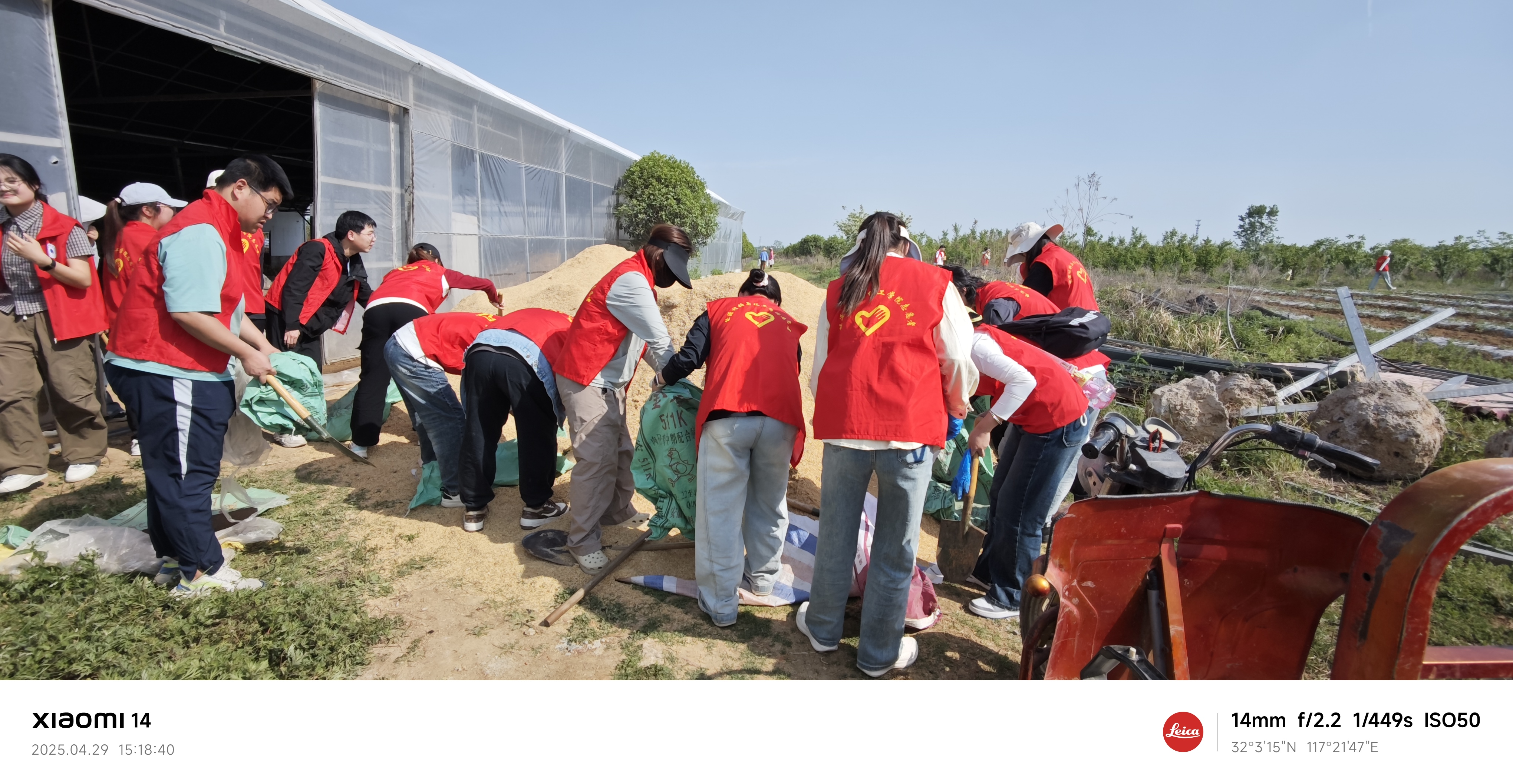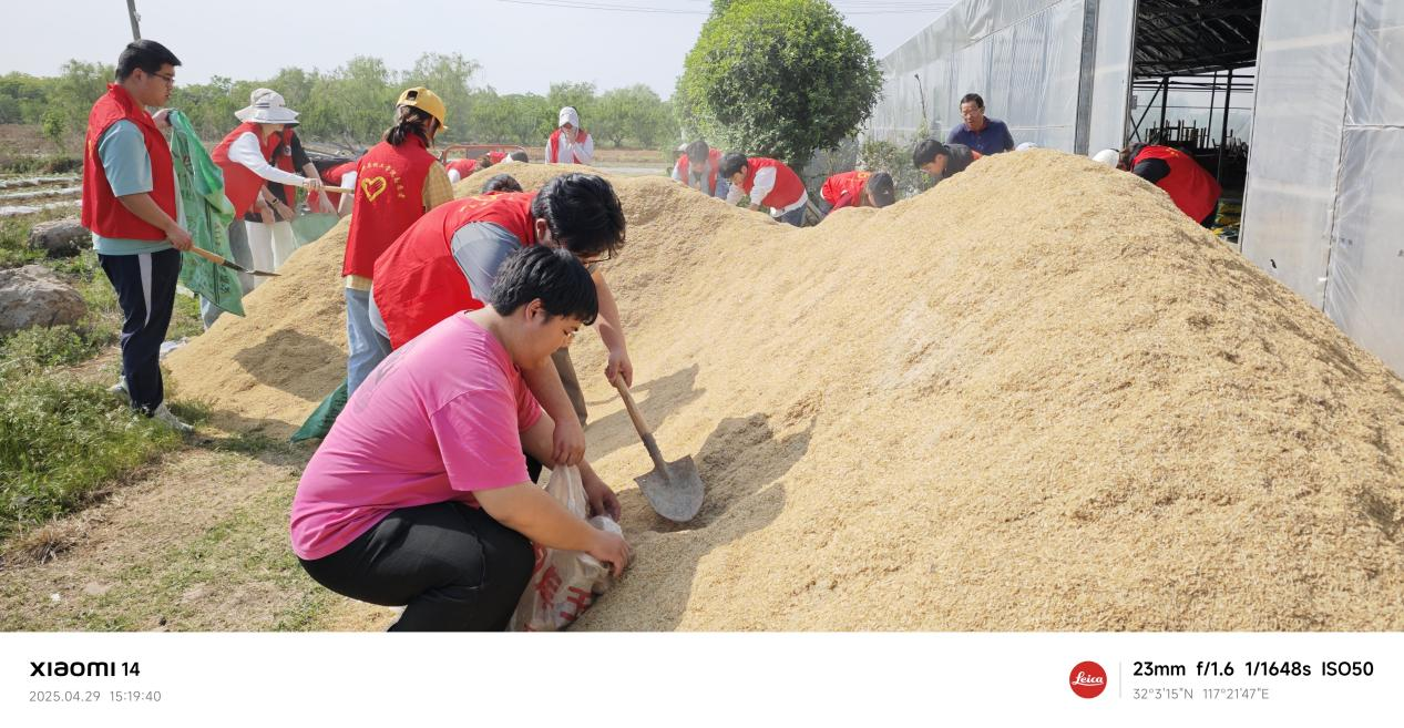 下午两点半,实践活动正式开始。志愿者们分成两个小组,在技术人员指导下先后完成了两项农事作业。第一项是装运稻壳,同学们分工协作,有的负责装袋,有的负责运输,在汗水中体会团队合作的重要性。第二项是桃子套袋,这项技术要求细致耐心,同学们认真学习技术要领,小心翼翼地完成每一颗桃子的保护工作。