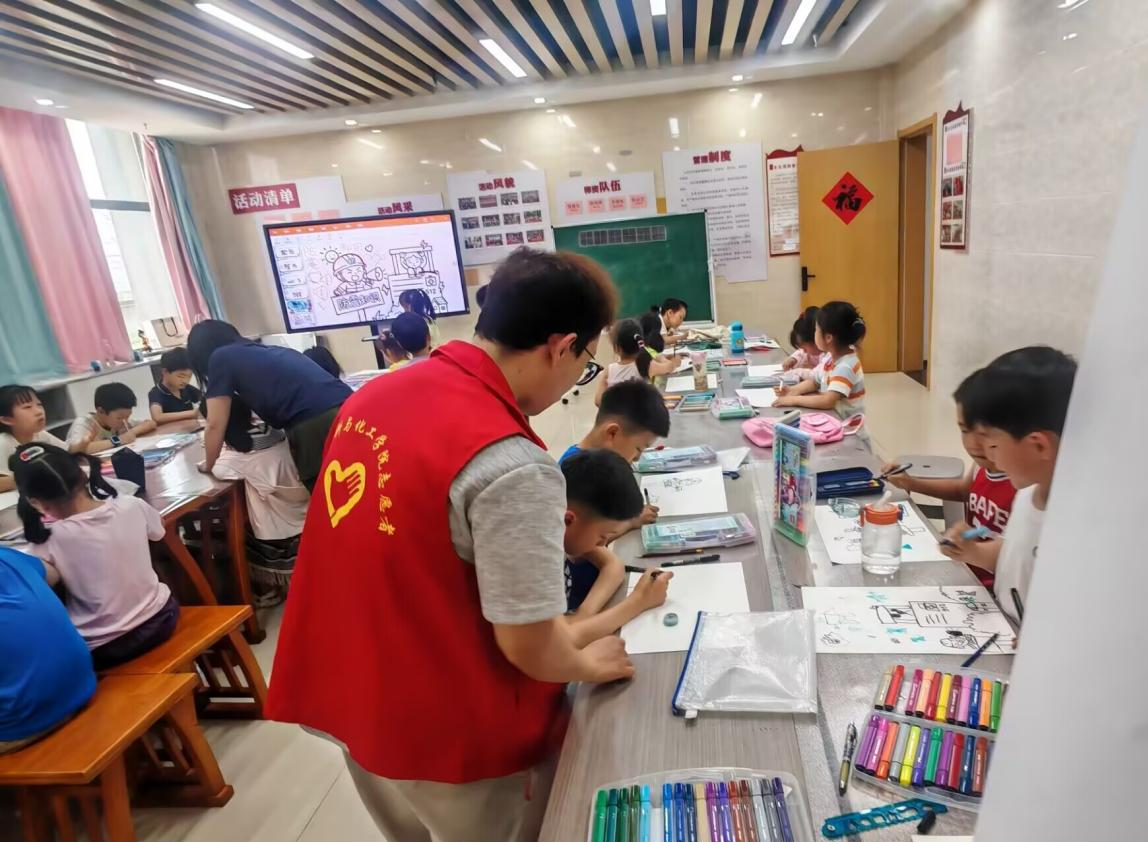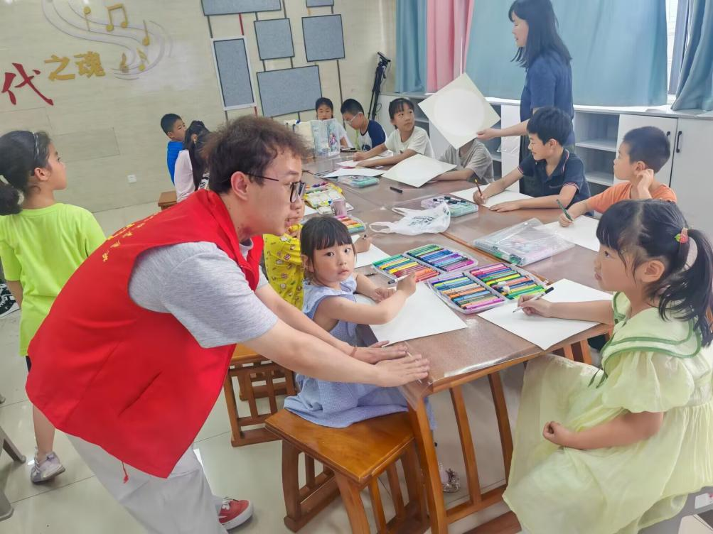 首先,志愿者们对参加美术课的小朋友们进行了签到,确定小朋友的人数,之后给到场的小朋友们分发素描纸给小朋友们画画。然后老师简单讲解了本节课的内容,便叫小朋友们自己动手创作。在讲课时,志愿者们帮助老师维持秩序;创作时,志愿者帮助小朋友们解决遇到的问题,指导他们画画。