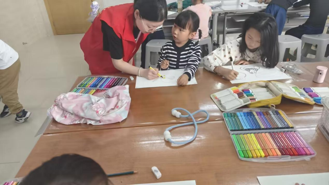 首先,志愿者们对参加美术课的小朋友们进行了签到,确定了小朋友的人数,之后给到场的小朋友们分发素描纸让小朋友们进行画画。然后老师开始讲解本节课的绘画内容,传达了善和美的价值观,小朋友们纷纷开始自己动手创作。在老师讲课时,志愿者们帮助了老师维持课堂上的秩序;小朋友创作时,志愿者帮助小朋友们解决遇到的问题,指导他们创造自己的思想花园。