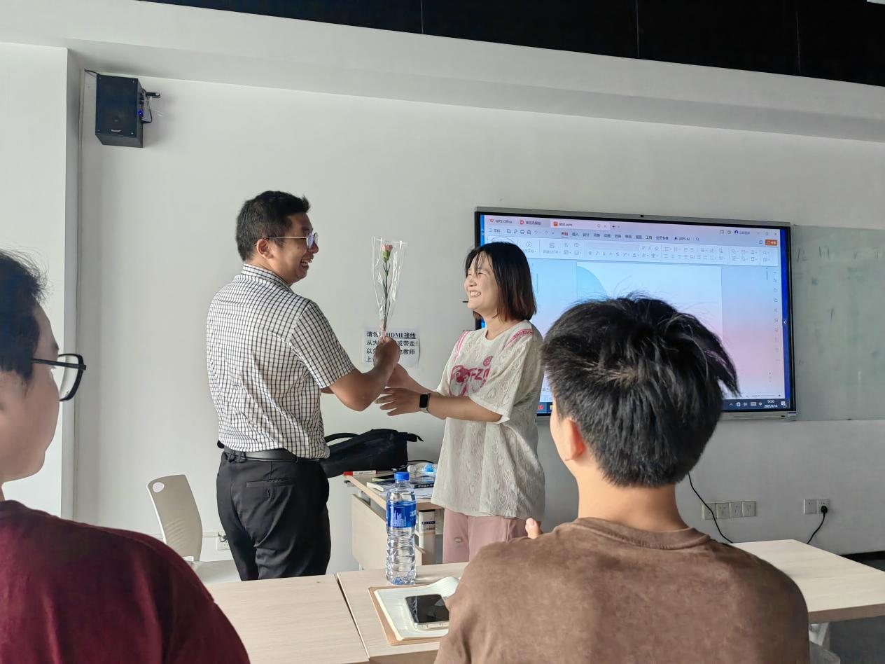 课间时分,同学们手捧着精心挑选的鲜花,带着腼腆又真挚的笑容,陆续走进办公室和教室。面对平日里在讲台前耐心讲解公式定理、在实验室里指导实验操作的老师,大家纷纷递上鲜花,真诚地向老师表示感谢:“老师,节日快乐,谢谢您”。