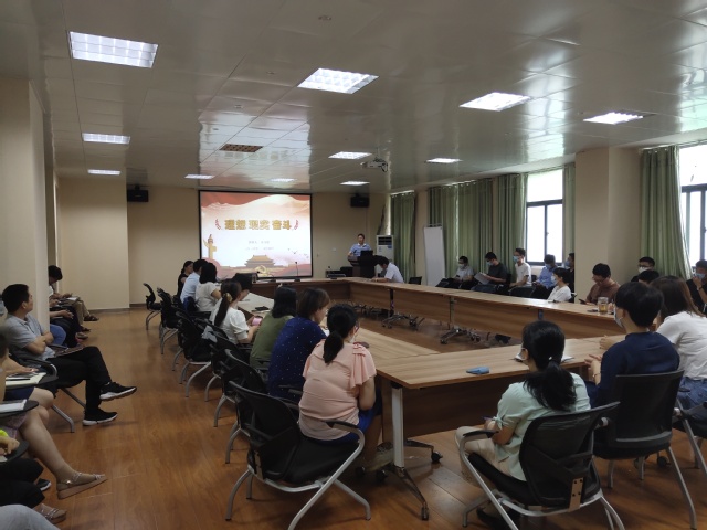 童玉松从理想、现实、奋斗三个方面,过去、当下、未来三个维度,国外、国内两个领域,介绍了党的发展历程,阐述了我党成立和奋进路程之艰辛,比较了中国共产党与国外政党的区别,指出了共产主义的优势所在。鼓励全体教职工仰望星空,脚踏实地,将理想主义与现实主义相结合;将潜心教书育人与积极奉献社会相结合;将个人努力奋斗与实现共同理想相结合,坚定共产主义信仰,在对社会公平正义的不懈追求中团结一致、共同努力。此外,童玉松建议学院党员同志认真学习党章和党史,并能通过学习,认清政党在社会发展中的地位和作用;认清个人与组织、与社会的关系;认清党员权利与义务的关系,牢记立德树人使命,在教书育人的岗位中潜心钻研、锐意进取,为培养德智体美劳全面发展的社会主义合格建设者和可靠接班人作出应有的贡献。