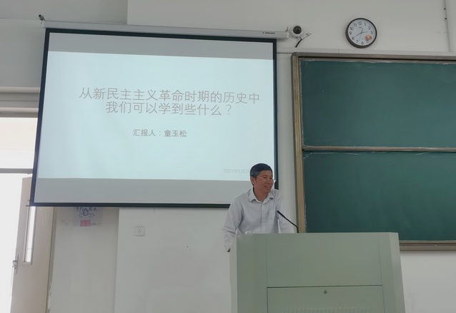 5月25日下午,能源材料与化工学院党委书记童玉松以“从新民主主义革命时期的历史中我们可以学到些什么?”为主题,为材化学院全体教职工作了一次专题党课辅导。