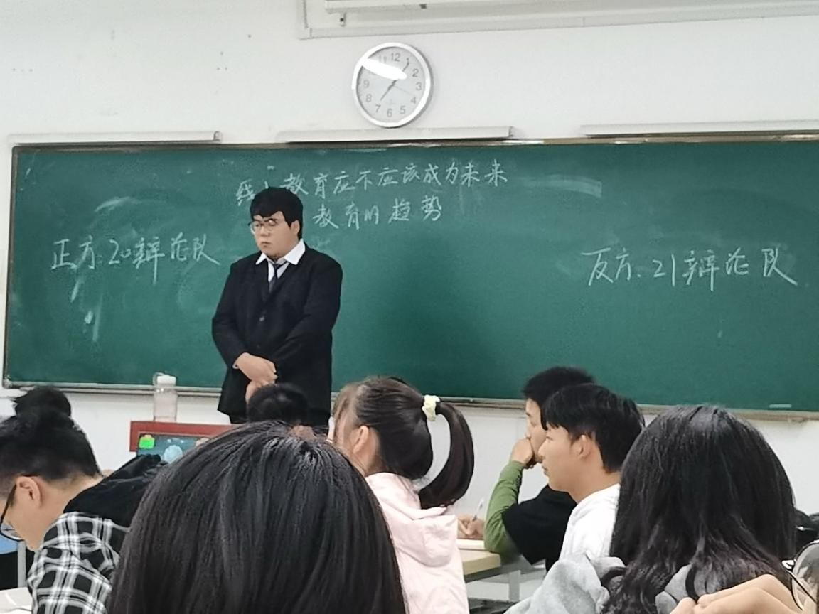 比赛伊始,现场可谓是“无声之处胜有声”,火药味十足;帅气的裁判,身着正装,挺拔着身姿;辩手们更有着战士们一往无前的气势。在主持人铿锵有力地宣讲比赛事宜和双方辩手进行简洁的自我介绍后,比赛正式开始。两队就线上教育应不应该成为未来的教育趋势的问题展开辩论。双方选手在立论,驳立论,智辩等环节中据理力争,引经据典,字字珠玑,使现场气氛迅速升温。在随后的自由辩中20辩论队辩手们咬紧牙关,在劣势的情况下背水一战。而21辩论队对对方步步紧逼,力破对手防御,双方唇枪舌战。正方言语犀利,反方辩述简明有力,双方你来我往,互不相让的激烈辩论给听众带来了一场视听盛宴。而经过这场充满硝烟的角逐,最终以21辩论队本次比赛中胜出。