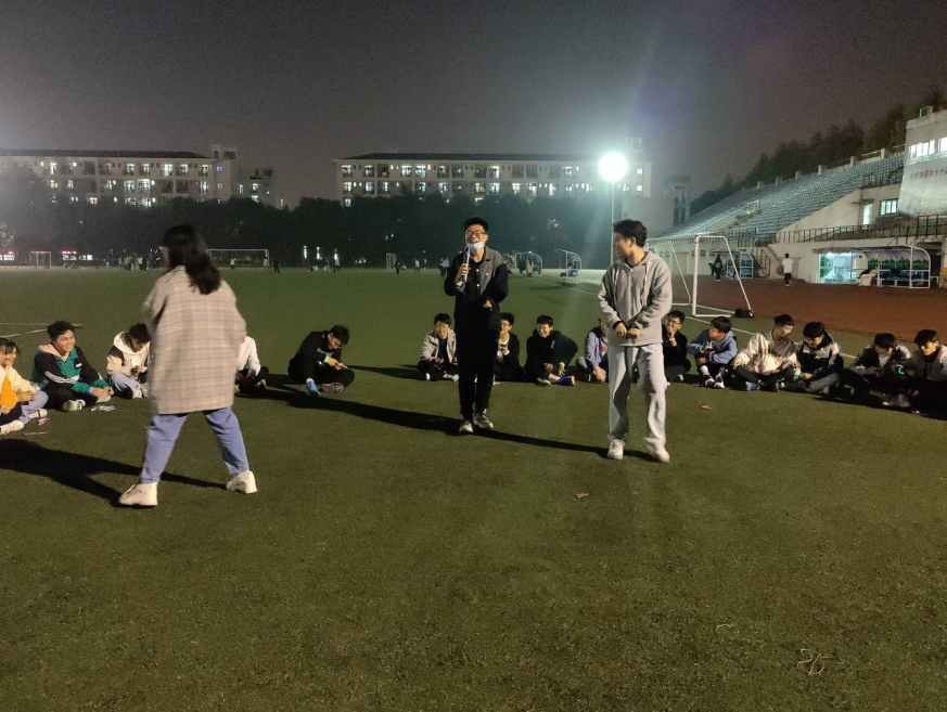 活动正式开始前,同学们在相关人员主持下陆续签到并领取了便利纸和荧光手镯。在同学们戴上荧光手镯并进行简单的热身后,开始了自由跑五分钟。同学们尽情挥洒着汗水,酣畅淋漓,给操场上留下了一道了亮丽的风景线。时间一分一秒地流逝,同学们集合在灯光下,片刻休息后,开始了“夜说心语”环节。主持人戴源让同学们写下令自己难受或是想要吐槽的事情,抒发自己内心压抑的情绪,告别emo。随后,由工作人员收取便利贴,用于开展后面环节。同时,工作人员礼貌有序地分发着准备的小零食。