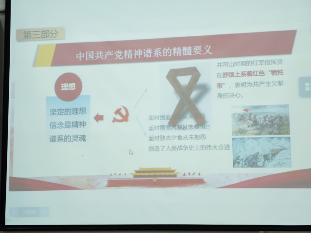 2021年12月31日,马克思主义学院谢敏芳副教授在生化楼二阶梯教室为我院党员上了一堂题为《中国共产党人的精神谱系》的党课。