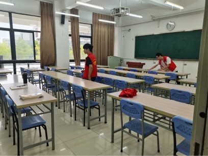 “共创文明校园,营造温馨食堂”活动中,我院志愿者一丝不苟地整理、清洁生化楼教室,擦拭黑板、摆放桌椅、打扫地面……不落下任何一个角落,为同学们营造学习环境。
