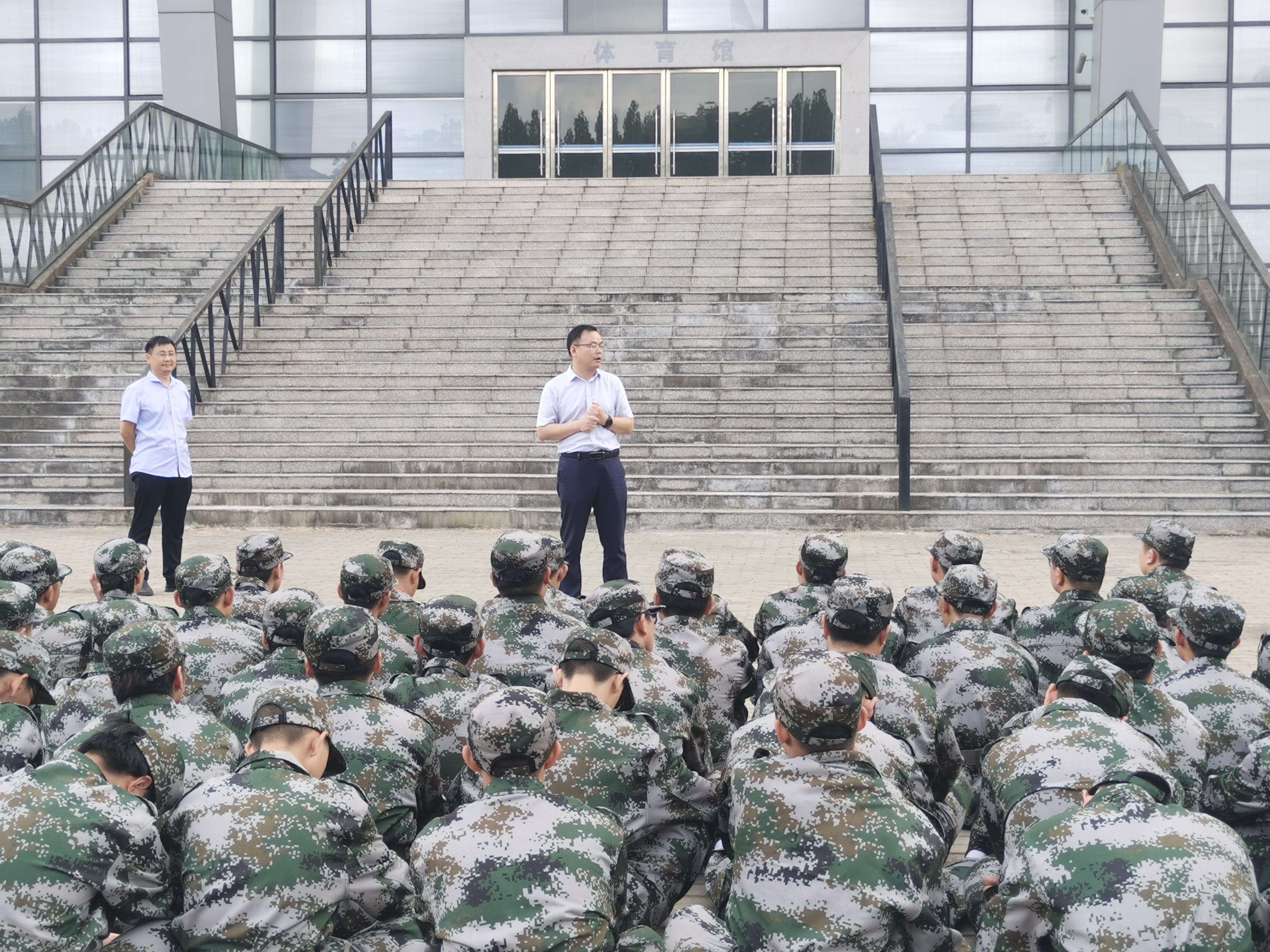 两位领导详细询问教官军训进展情况,并代表学院对参训教官的严谨负责、辛勤工作表示衷心感谢。刘沛平嘱托新生服从教官指令和军训安排,遵守校园疫情防控要求,在训练中培养和发扬顽强拼搏、奋勇争先的精神,以积极进取的态度锻炼体魄,为接下来的大学生活打下坚实的基础。魏安乐介绍了学院的发展历程、专业设置、科研和教学成果,鼓励参训新生树立远大志向,勤勉刻苦,锐意进取,争取收获美好的大学生活。