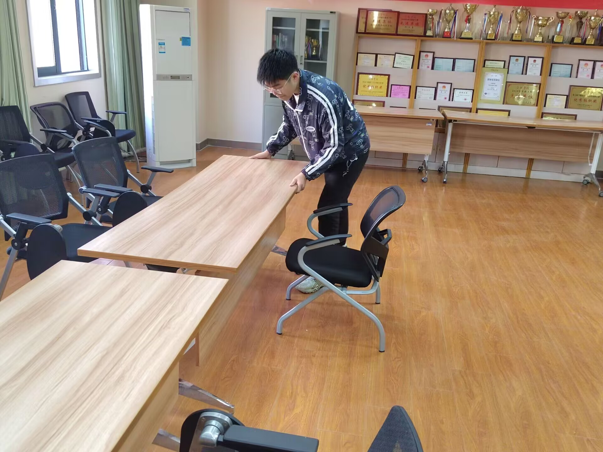 为深入学习贯彻习近平总书记关于弘扬雷锋精神的重要指示,响应校团委“学雷锋”志愿服务活动的号召,服务学院就业工作,3月9日16点,能源材料与化工学院学生会志愿团组织了一场打扫会议室的志愿活动,活动召集了四位本学院志愿者,对会议室进行了全方面的打扫。
