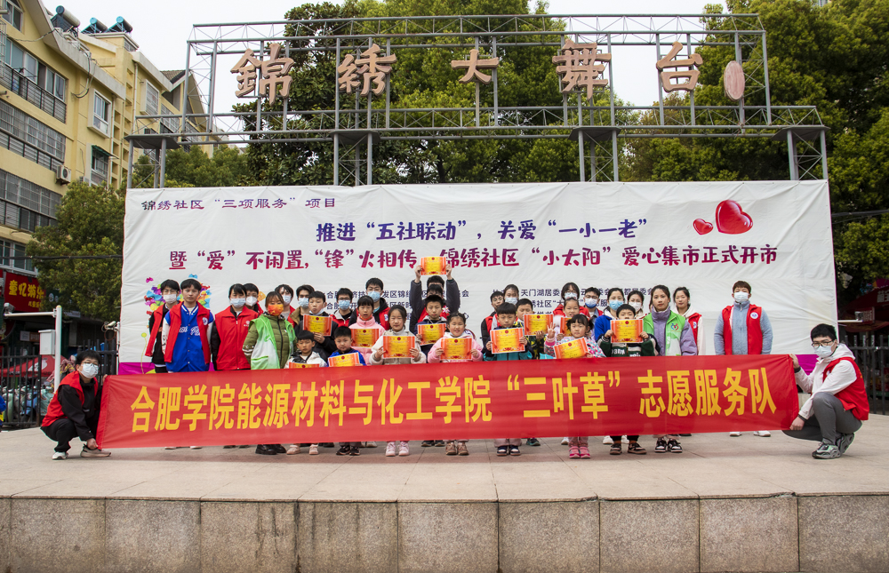 秉承着为辖区困难弱势群体“雪中送炭”,让他们感受到社会的真情和关怀的宗旨,3月25日,锦绣社区联合合肥经开区德颐顺老年服务中心开展了爱心集市义卖品牌项目。合肥学院能源材料与化工学院团委与锦绣社区搭建“校社平台”,成立合肥学院能源材料与化工学院“三叶草”志愿服务队,协助锦绣社区组织辖区青少年、居民义卖闲置物品为困难群体募集善款。