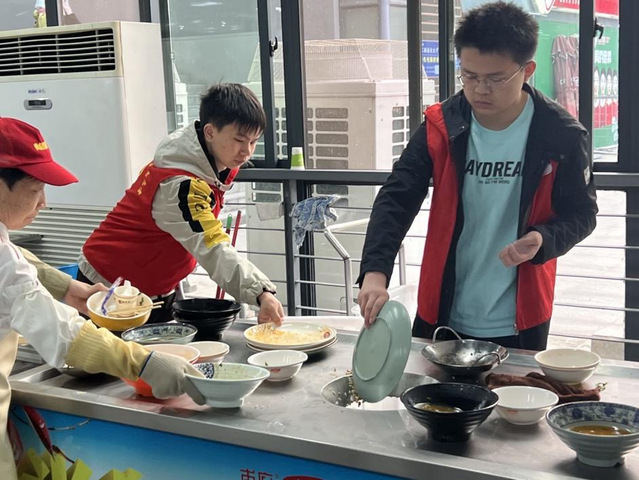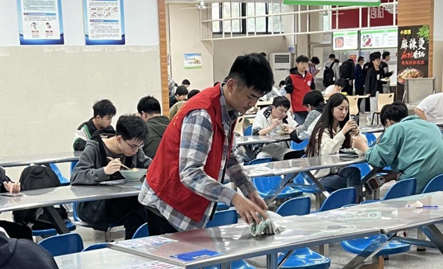 为深入学习贯彻习近平生态文明思想,以文明实践助力文明创建,进一步提高我院学生文明素养,培育校园新风,努力营造积极向上、健康和谐的校园文明氛围,我院决定4月21日至25日在二、三期食堂举办维护食堂秩序志愿活动。在这次维护食堂秩序的志愿活动中,志愿者们不辞辛苦,帮助食堂工作人员做好卫生清理工作,彰显新时代青年们的无私奉献精神。