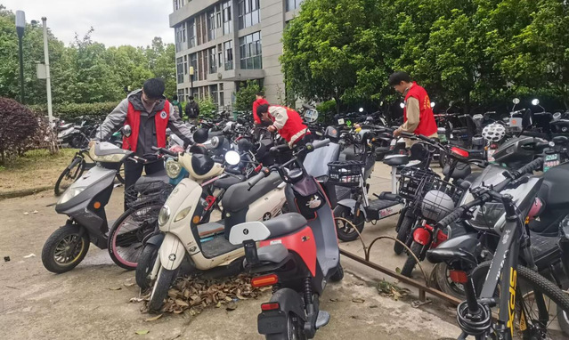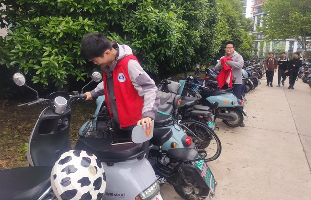 志愿者们维持宿舍楼车辆秩序,做好高峰时段的车辆的停放工作。他们温馨提示同学把车停靠在宿舍楼门口的两边,以免堵塞宿舍门口,影响同学出入,并提醒停车同学保持车辆整齐,停放到合适位置。活动过程中热心帮助有需要的同学规范停车。
