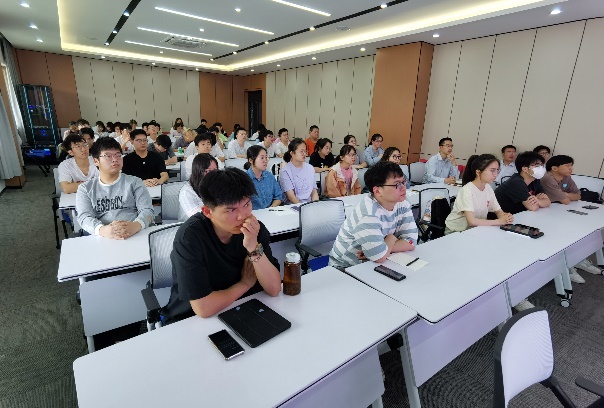学术报告结束后,胡院长向三年级本科生介绍了我院2024年研究生招生与培养情况,全方位展示了我院的发展历程、学科硕士点建设、科研成果、导师队伍和校园环境等,并邀请同学们今年暑假到合肥学院来参观学习。邓崇海副院长介绍了近几年我院研究生的报考和招生以及奖学金具体情况,结合当前是我院即将迎接教育部专家进校考察更名大学的大好发展机遇,以及20级联合培养毕业生支国伟同学的科研成果展示,动员并鼓励大家第一志愿填报我院2024年硕士研究生。