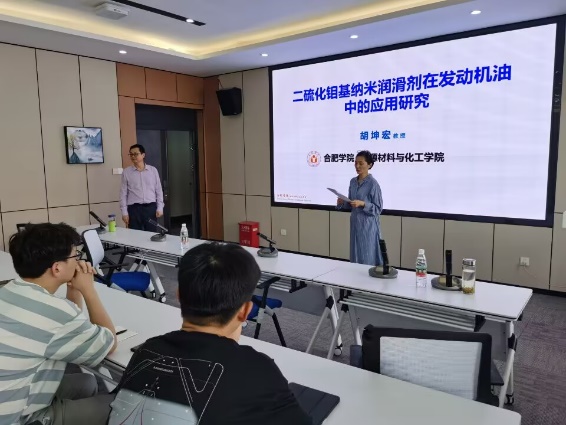 下午2时许,在材料工程学院郝凌云院长主持下,胡院长结合自己申报国家自然科学基金的经历和科研成果,给该院学生做了一场题为“二硫化钼基纳米润滑剂在发动机油中的应用研究”学术报告,引导学生如何在科研过程中发掘科学问题、凝练学术思想,深入浅出的介绍了课题组在发动机油中添加二硫化钼基纳米润滑剂对机械润滑性能提升方面取得的一系列科研成果。