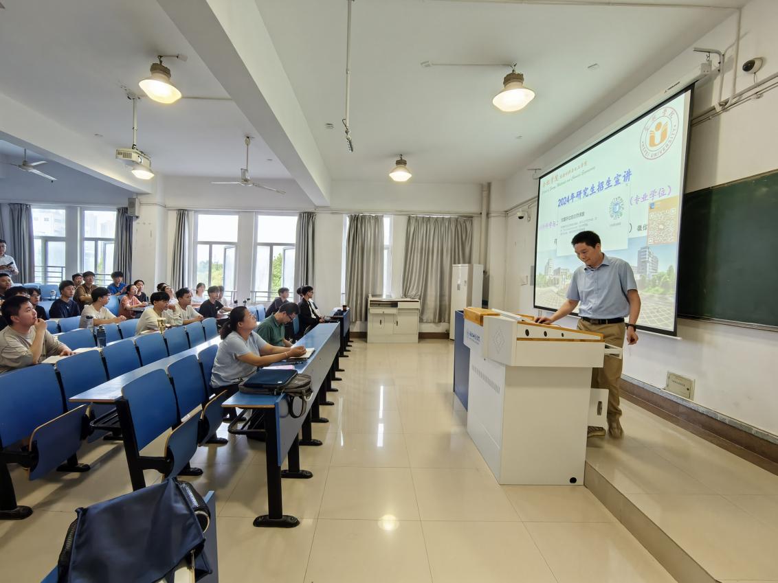 学院交流会结束后,在马小航主任主持下,邓院长给该院学生做了2024年研究生招生宣讲报告,介绍了我院2024年研究生招生与培养情况,全方位展示了我院的发展历程、学科硕士点建设、科研成果、导师队伍和校园环境、研究生的报考和招生以及奖学金等具体情况,动员并鼓励大家第一志愿填报我院2024年硕士研究生。