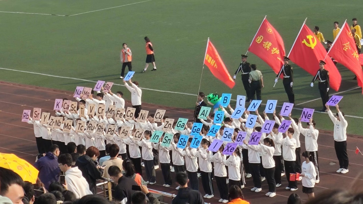 本届运动会的开幕式在激昂的音乐声中拉开了帷幕。学校领导、各学院师生代表以及来宾们齐聚一堂,共同见证了这一盛大的时刻。开幕式上,学校领导发表了热情洋溢的讲话,对本届运动会的举办表示祝贺,并鼓励同学们积极参与,展现风采。随后,各学院的方阵队伍依次入场,有序地进行了入场仪式,不仅展示了团结和奋进的精神,更是将本学院的特点完美体现,我院方阵以元素周期表的形式向大家展现,充分体现出了我院的专业特色,极具富有代表性。随后更是有舞龙、国标舞、啦啦操等精彩的表演,再次将本次运动会推向了高潮,观众席上座无虚席,掌声、喝彩声不绝于耳
