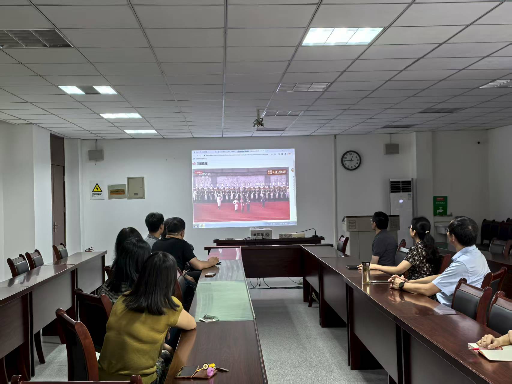 93日上午9时,纪念中国人民抗日战争暨世界反法西斯战争胜利80周年阅兵仪式在北京天安门广场隆重举行,基础实验与实训中心组织全体党员干部齐聚在423楼党员活动室集中收看。
