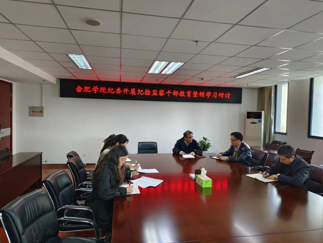 会上,集中学习了《习近平关于坚持和完善党和国家监督体系论述摘编》,学习传达了中央纪委印发的《纪检监察机关问题线索管理办法》和《关于进一步加强和规范案件质量评查工作的意见》,安徽省纪委办公厅印发的《省纪委监委进一步加强对派驻机构直接领导统一管理的若干规定》。会议还审议了《合肥学院纪检监察干部队伍教育整顿举措任务清单》。