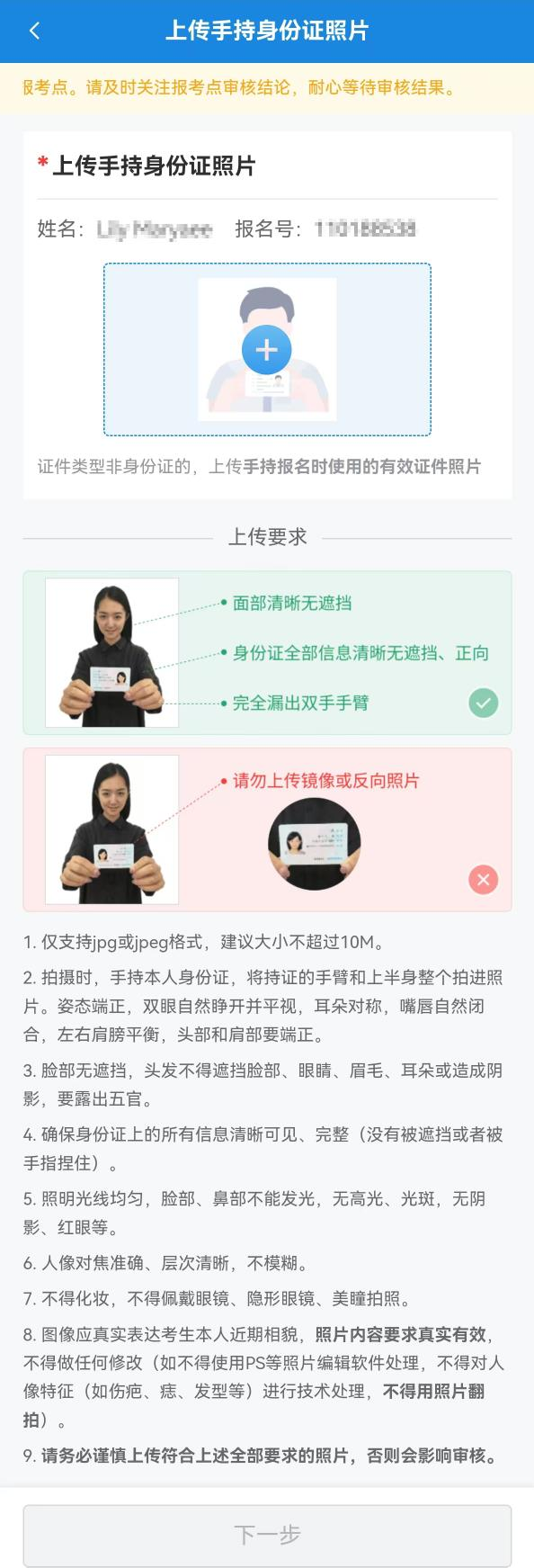 考生登录系统后需根据系统提示按要求上传以下两个必须的材料原件(不得上传复印件):
