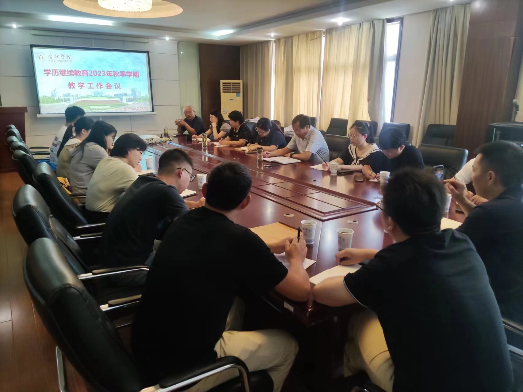 8月25日上午,学历继续教育2023年秋季学期教学管理工作会议在黄山路校区职培楼409会议室召开,学历教育科全体工作人员、各助学点教学负责人及教务管理人员参加了会议。会议由王胜利副院长主持。