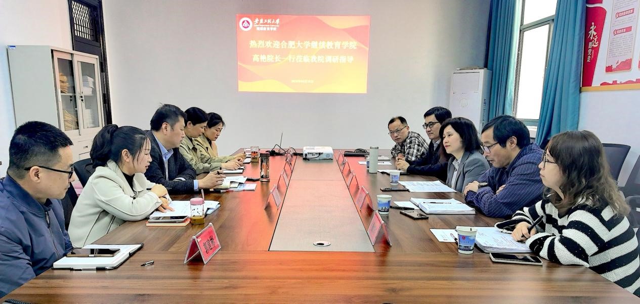 4月18日下午,由我院院长高艳带队,副院长王胜利、杨承刚等一行5人赴安徽工程大学继续教育学院,重点就学历继续教育教学管理和非学历教育培训模式等方面进行调研交流。安徽工程大学继续教育学院院长许钢及相关工作人员参加了调研座谈。