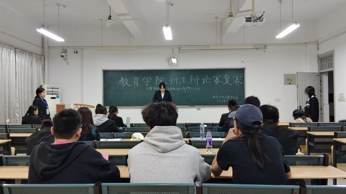10月24日18时30分,教育学院新生辩论赛复赛第一场在一期3栋303举行,评委分别为经济与管理学院刘正宇、城市建设学院毕文鑫以及外国语学院雷创。任艺担任本场比赛主持人。