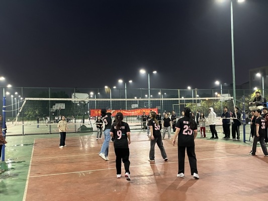 比赛伊始,教育学院的女排队员们就展现出高昂的斗志和强大的实力。她们在发球环节表现尤为出色,一次次精准有力的发球,如利箭般冲向外国语学院的场地,给对手的一传造成了极大的压力。教育学院的队员们凭借着发球的优势,迅速拉开比分。外国语学院的选手们也积极作出回击,她们奋力拼搏,努力追赶比分,但在教育学院的强大攻势下,上半场以25:14 的比分结束,教育学院暂时领先。
