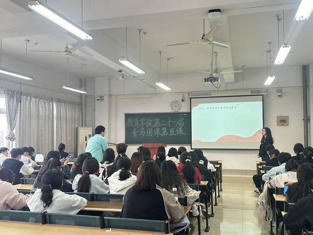 为了深入学习新时代建设教育强国的根本遵循,4月2日中午12:10,合肥大学教育学院第二十一届青马团课第五课在三栋307教室顺利举行,学子们齐聚一堂,继续一段求知之旅。本次课程紧密结合新时代中国特色社会主义教育发展的实际,围绕新时代建设教育强国的根本遵循展开,组织部部长朱思宇担任主持人。