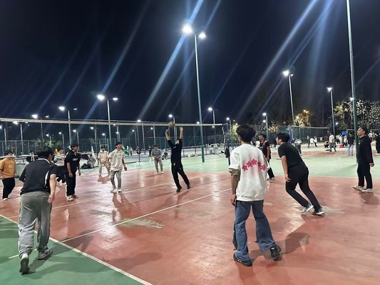 11月29日晚18时30分,教育学院对阵生物食品与环境学院和外国语学院联队的男排系部联赛在一期排球场激情开赛,现场气氛热烈,观众们满怀期待,共同见证了这场精彩绝伦的排球对决。