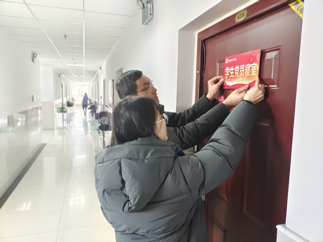 仪式结束后,教育学院党委书记刘良宏和各支部书记前往各学生社区为党员寝室挂牌。(教育学院撰稿:包杭姗、王娜 初审:张弦乐 复审:符琳 终审:王迅)
