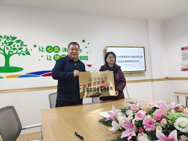 114日,学院党委副书记王迅、党政办主任杜启明、学工办主任符琳一行赴蚌埠高新教育集团七色光幼儿园,签订大学生就业实践基地协议。