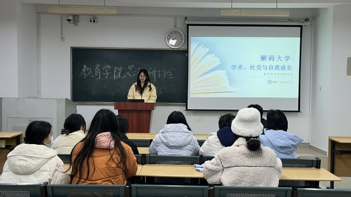 教育学院于12月18日晚20时30分在3栋302教室成功举办了一场主题为教育学院思政研讨会的活动。此次研讨会由教育学院23级思政委员联络代表徐锦瑶主持,23级、24级各班思政委员参加。此次研讨会旨在通过交流思想来促进学生在思想政治教育方面的深入理解和实践。