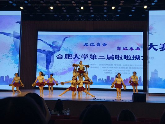 比赛现场,随着激昂音乐响起,教育学院星火啦啦操队员们活力登场,高抛的花球划出绚丽弧线,利落踢腿动作整齐划一,流畅的旋转与行云流水般的队形变换,瞬间点燃全场气氛。队员们用扎实的功底与饱满的热情,将每一个动作都展现得淋漓尽致,充分彰显出青春的蓬勃朝气。