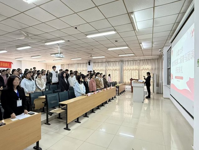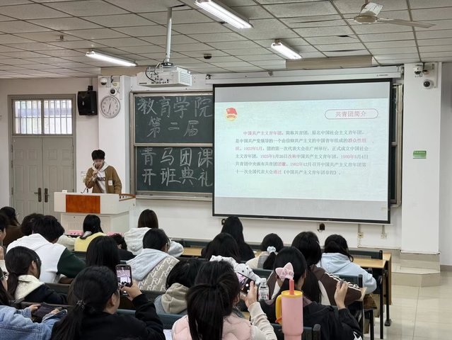 典礼由组织部部长鲁琪静主持。伊始,全体成员起立奏唱共青团团歌,在激昂旋律中感悟团员使命。随后,主持人介绍团课召开背景、学习规划及纪律要求。张弦乐老师结合党的号召发言,强调青马团课重要意义,嘱托学员牢记团员身份,将理论成果转化为成长动力。新生代表张韵涵上台展现青年朝气,张对典礼作系统总结并展望未来。
