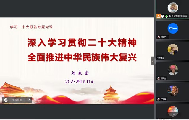 为深入学习贯彻党的二十大精神,全面把握新时代十年伟大变革的深刻内涵和重大意义。1月11日上午,教育学院党委书记刘良宏利用腾讯会议给学生学前教育支部讲授党课,题目为《深入学习贯彻二十大精神,全面推进中华民族伟大复兴--新时代这十年》 本次党课,刘良宏围绕“新时代十年的创新性举措”、“党和国家事业的伟大成就”、“取得辉煌成就的根本原因”三个方面,带领同学们学习党的二十大报告中总结的新时代十年的伟大变革。十年来,党中央团结带领全党全军全国各族人民,采取一系列战略性举措,推进一系列变革性实践,实现一系列突破性进展,取得一系列标志性成果,经受住了来自政治、经济、意识形态、自然界等方面的风险挑战考验,党和国家事业取得历史性成就、发生历史性变革,推动我国迈上全面建设社会主义现代化国家新征程。 刘良宏特别要求支部成员,作为未来的老师,要牢记习近平总书记关于加快建设教育强国、科技强国、人才强国的殷殷嘱托,立足党之大计,胸怀“国之大者”,传承红色基因,赓续百年文脉,坚持“为党育人、为国育才”的初心使命,进一步落实好立德树人根本任务。 聆听党课后,支部党员纷纷表示要持续秉承“让优秀成为一种习惯”的优良学风,勤于思考,敢于创新,勇于攻坚;自觉用习近平新时代中国特色社会主义思想和党的二十大精神指导自己的学习、工作和实践,切实把学习成效转化为推动学院和个人高质量发展的强大动力。(教育学院 学前教育党支部 符琳 审稿:王迅)