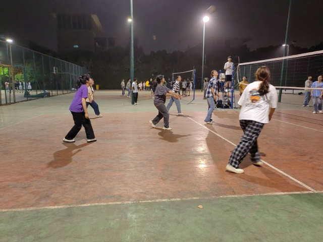 4月11日18:30教育学院与城市建设与交通学院的比赛于一区排球场准时开始。教育学院女排以2:1取得胜利。