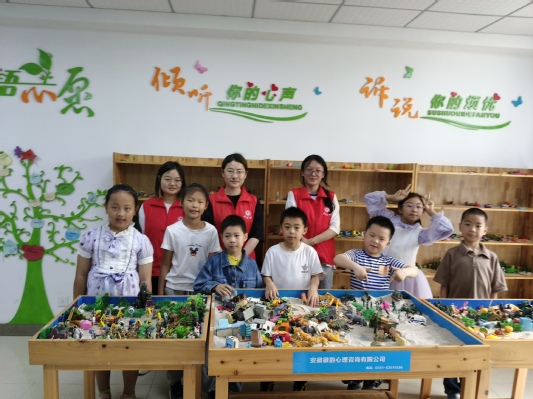 5月27日上午,教育学院阳光心志队赴欣园社区为社区儿童开展心理沙盘辅导活动。本次活动旨在深入推进社区儿童心理健康教育工作,有效帮助儿童疏导情绪,提高认知能力,充分发挥儿童的想象力、逻辑思考能力、言语表达能力,并让广大儿童形成乐观积极的心态,提高他们的团队合作意识。 活动伊始,志愿者们简要介绍了心理沙盘的意义、操作规则及活动的注意事项。随后,在志愿者的组织下,孩子们在安全且自由的空间中,选取符合自己内心特征的沙具并按照自己内心的想法将沙具摆放好,感受内心意识的流动与交互,通过沙具和沙粒的结合,在沙盘中表达内心。最终经过长达四十分钟的摆放,孩子们完成了各自的沙盘作品。接下来,孩子们依次分享自己沙盘创作的想法和所要表达的意义,说出沙盘作品中最能触动自己的地方,在交流与讨论中,孩子们发现了自己内心的闪光点,从而增加了自信,更加肯定了自己。活动结束后,志愿者们根据每个孩子在活动中的表现,适当地向家长们提出了教育方式、沟通技巧等方面的建议,帮助家长们读懂孩子的内心世界,促进亲子关系和谐发展。