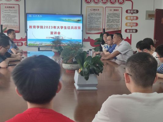 为深入贯彻习近平强军思想,进一步落实国家相关征兵工作要求,帮助学生全面了解征兵政策,激发应征入伍热情,5月31日下午,教育学院组织召开大学生征兵政策宣讲会。校党委武装部国防动员科科长郑国平应邀作政策宣讲,学院党委副书记王迅、辅导员以及2019、2020、2021级部分学生代表参会。