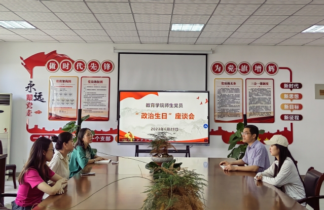 为有效激发党员身份意识,提升党员担当精神,6月28日下午,教育学院党委举办迎“七一”师生党员“政治生日”座谈会,院党委书记刘良宏主持座谈会。 会上,刘良宏首先向与会党员送上了真挚的祝福,感谢她们为推动学院事业发展做出的贡献。随后党员们一一回顾了自己的入党历程,分享了入党时的初心,畅谈了入党后的感悟体会和自己在学习、工作上的表现,对学院党委及时发送“政治生日贺卡”表示感谢。