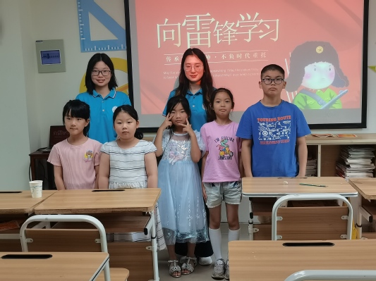 7月4日,合肥学院教育学院“七彩童年,‘育’你相伴”三下乡团队来到滨湖和园社区开展社会实践活动,志愿者朱思宇和周琴为孩子们带来了“弘扬雷锋精神,传颂英雄故事”主题课程。 雷锋精神,人人可学;奉献爱心,处处可为。六十年来,雷锋精神哺育和激励了一代又一代人成长,为让雷锋精神在中华大地不断闪耀光芒,继承革命先辈的优良传统,培养学生爱党、爱国、爱社会主义的朴素情感,我们设计了本次课程内容。在课程开始时,朱老师呈现了雷锋的卡通形象,让同学们猜测本节课学习的榜样人物是谁,同学们对于雷锋的形象并不陌生,都踊跃回答,“雷锋!”